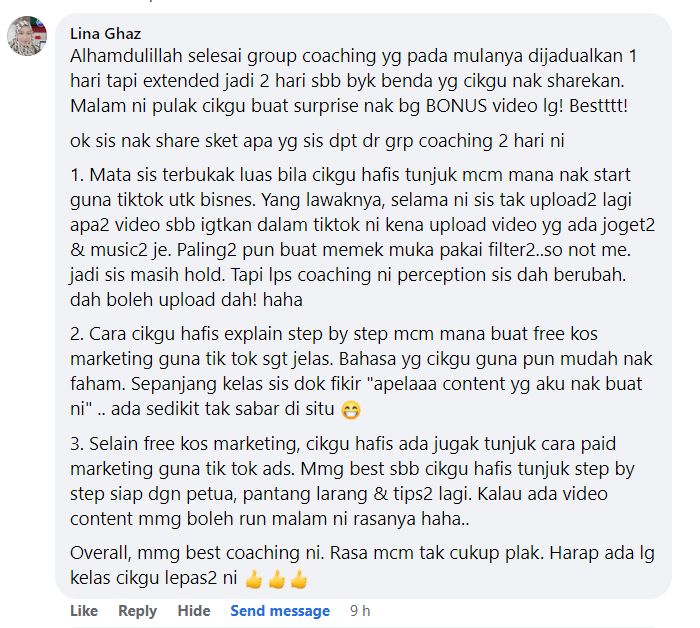 Apa Yang Mereka Dah Belajar Dalam Online Group Coaching LIVE Tik Tok + Wasap Ni?